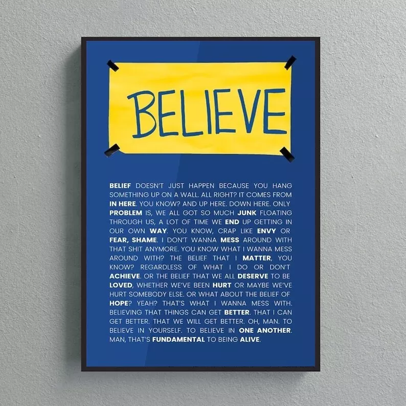 Ted Lasso Believe Sign Poster Ted Lasso Quote Semi Gloss Wall Art