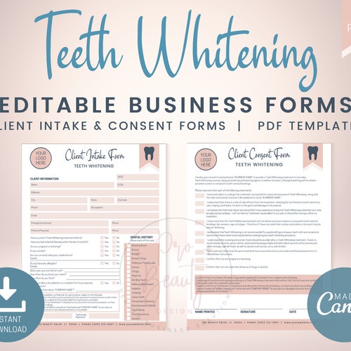 Editable Teeth Whitening Intake and Consent Form Template Etsy