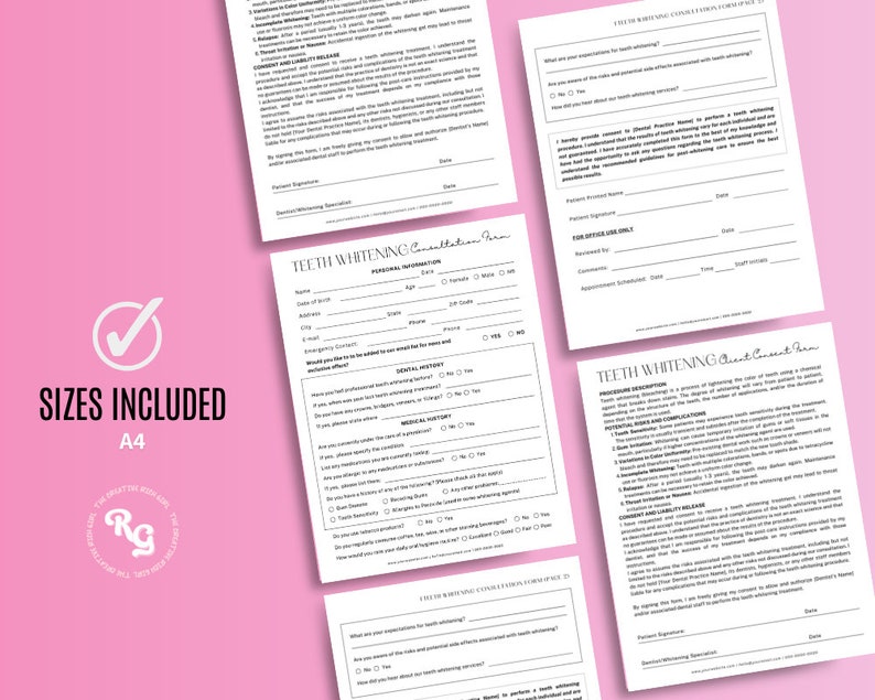 Teeth Whitening Intake and Consent Form Editable in Office Etsy Australia