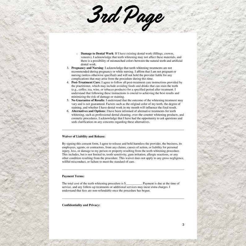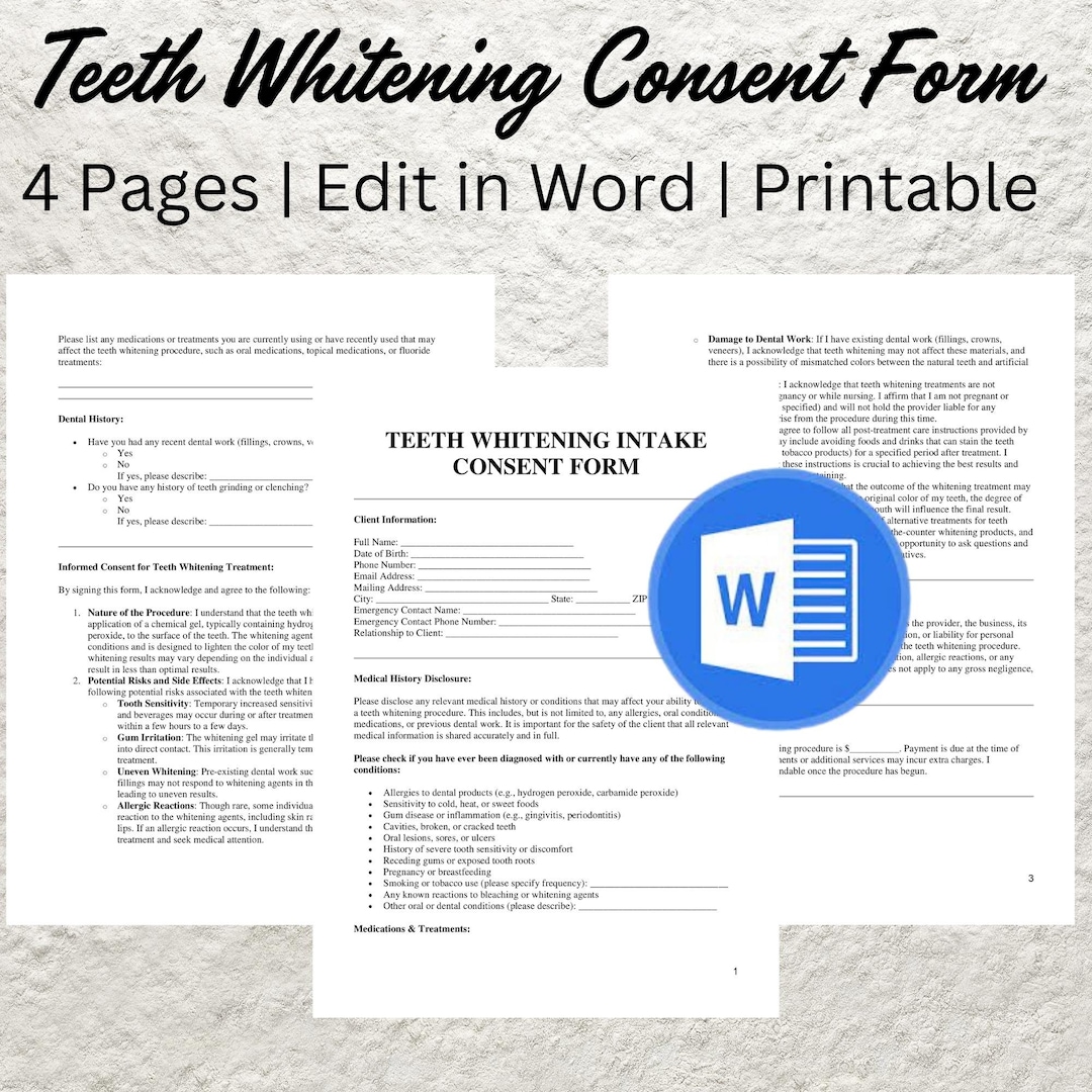Teeth Whitening Consent Form Editable and Printable Digital Etsy