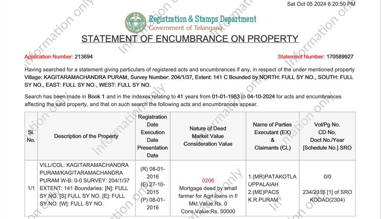 Telangana Encumbrance Certificate