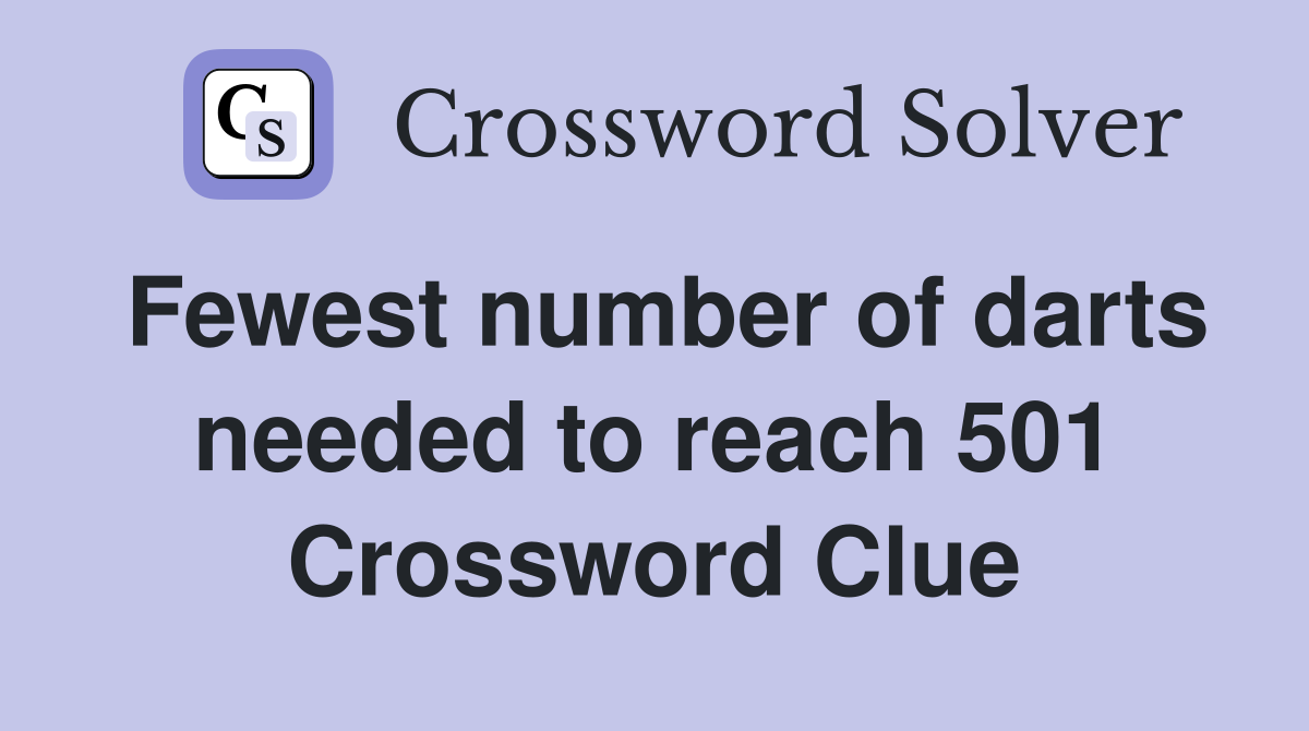 Fewest number of darts needed to reach 501 Crossword Clue Answers