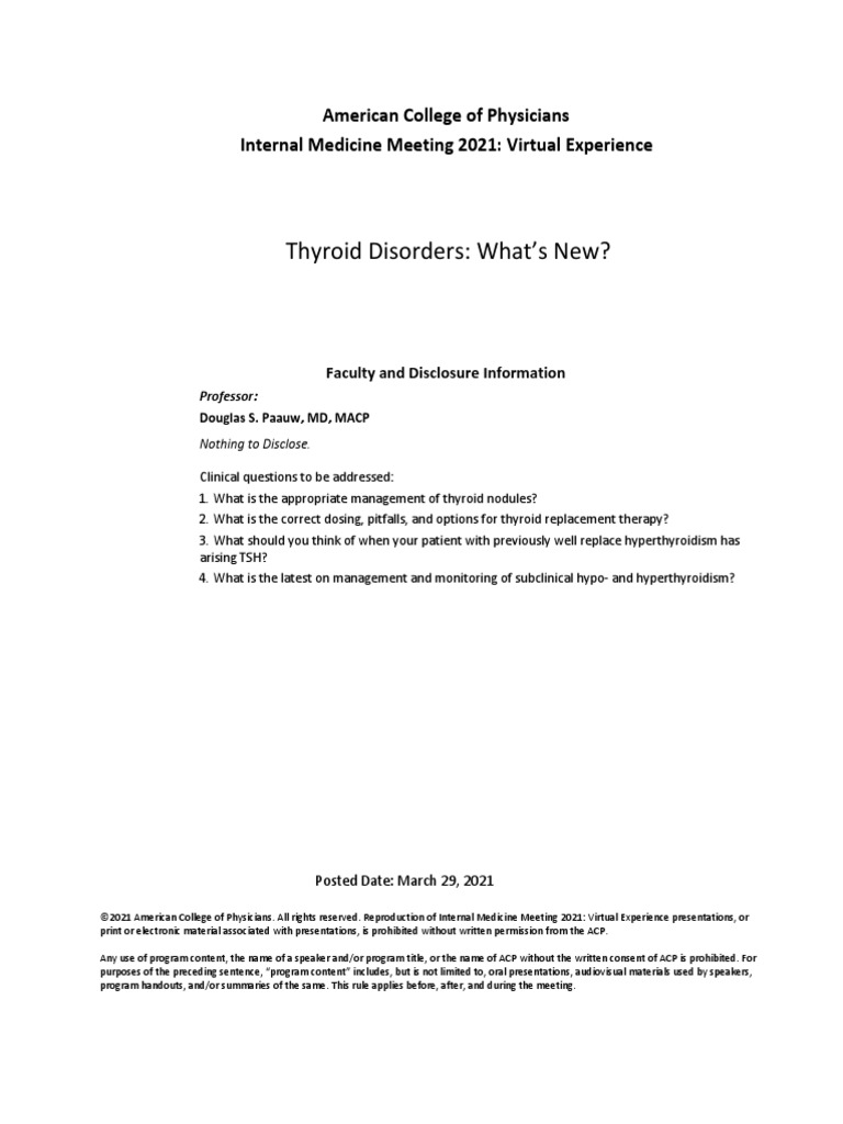 HANDOUT MTP019 Thyroid Disorders Download Free PDF Hypothyroidism