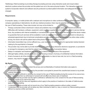 Professional Teletherapy Consent Form Template Doc Example
