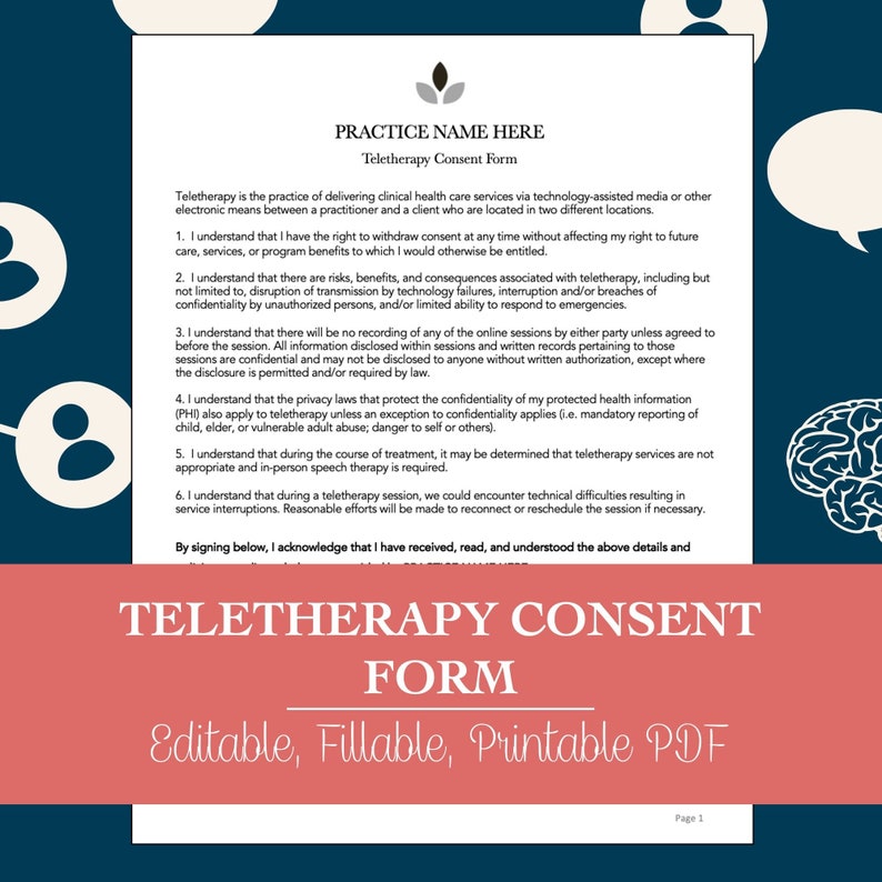 Teletherapy Consent Form (Editable Fillable Printable PDF