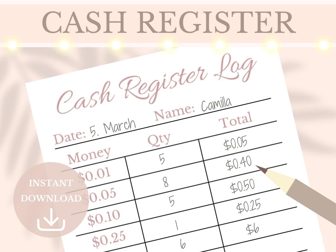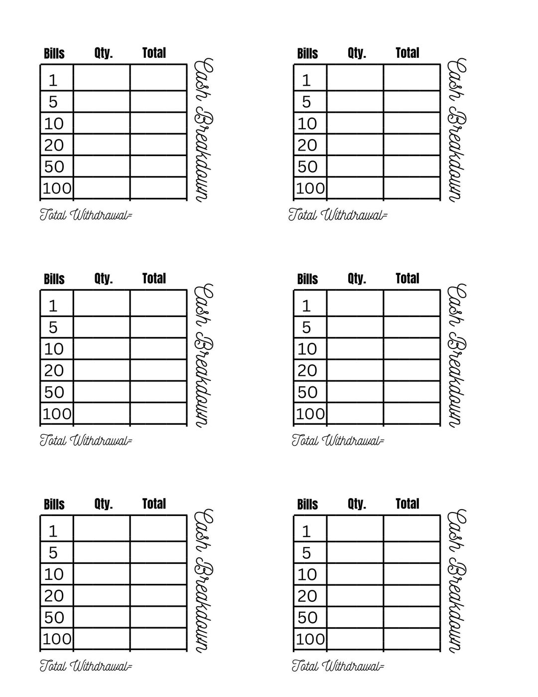 Cash Breakdown Teller Slip Printable Cash Register Till Balance Tracker