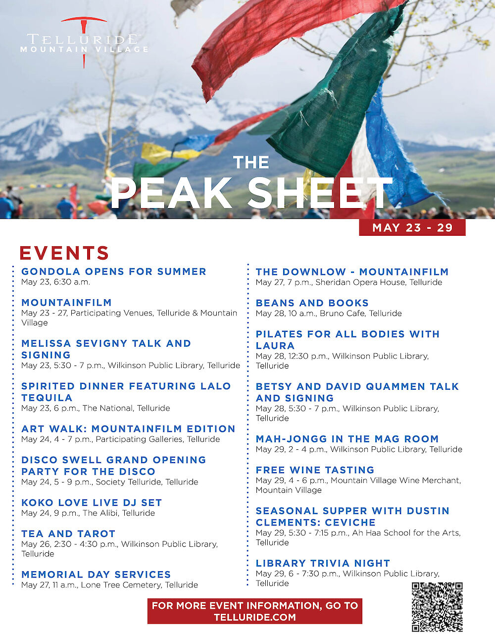 Telluride PEAK SHEET: May 23 29 Events Activities Mountain Rose Realty