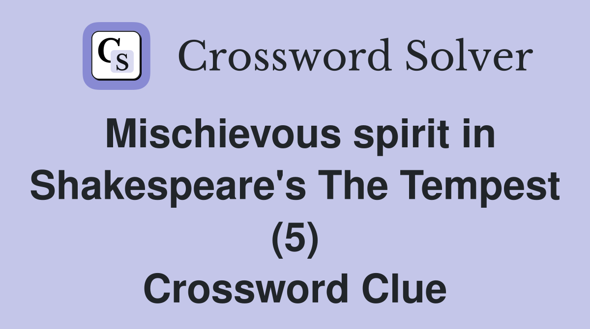 Mischievous spirit in Shakespeare s The Tempest (5) Crossword Clue