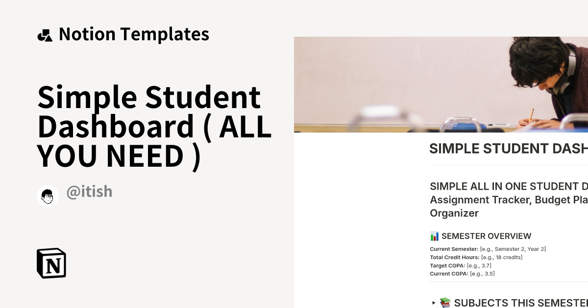 Simple Student Dashboard ( ALL YOU NEED ) Template Notion Marketplace