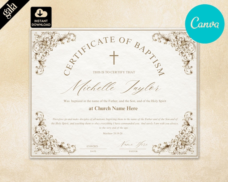 Editable Certificate of Baptism Template Baptism Certificate Canva
