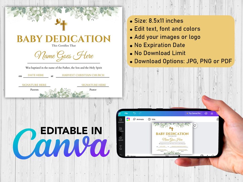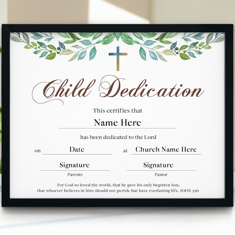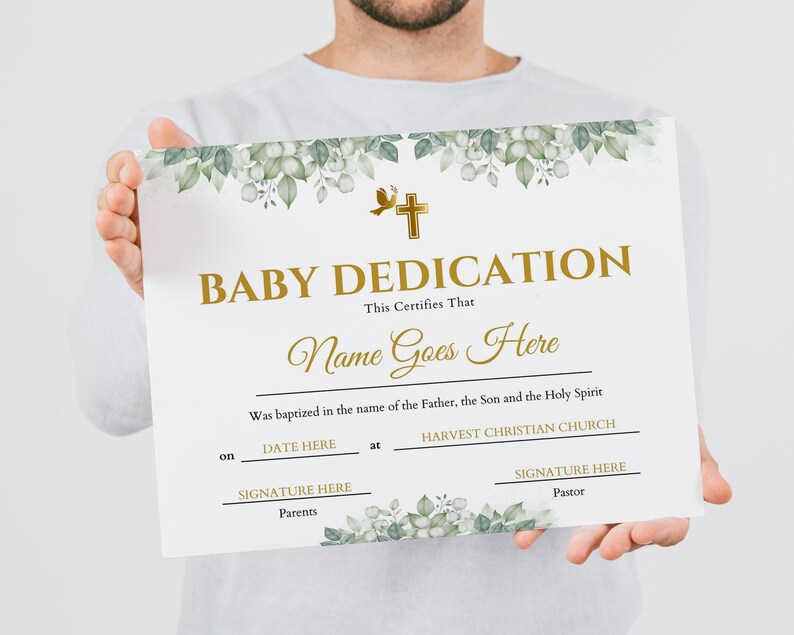 Editable Baby Dedication Certificate Greenery Baptism Template