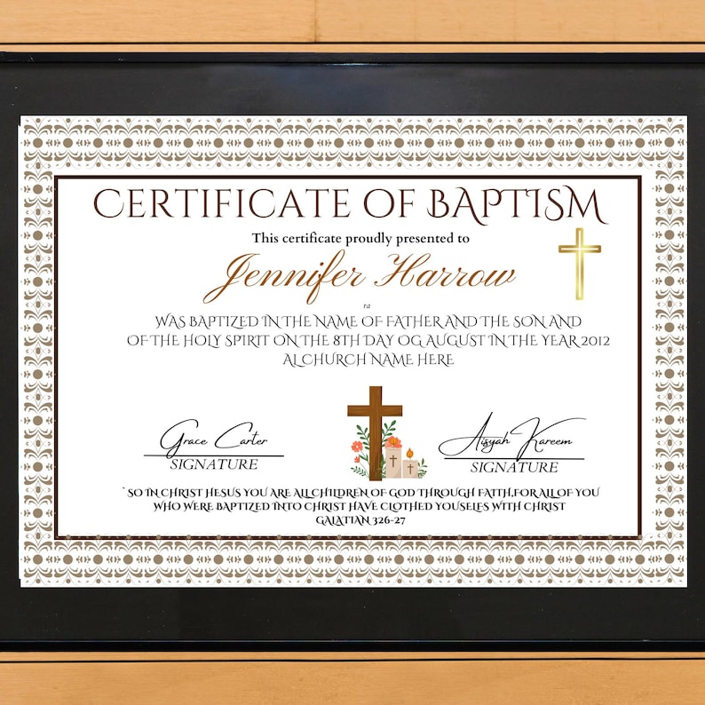 Baptism Certificate Canva Template Certificate of Baptism Custom