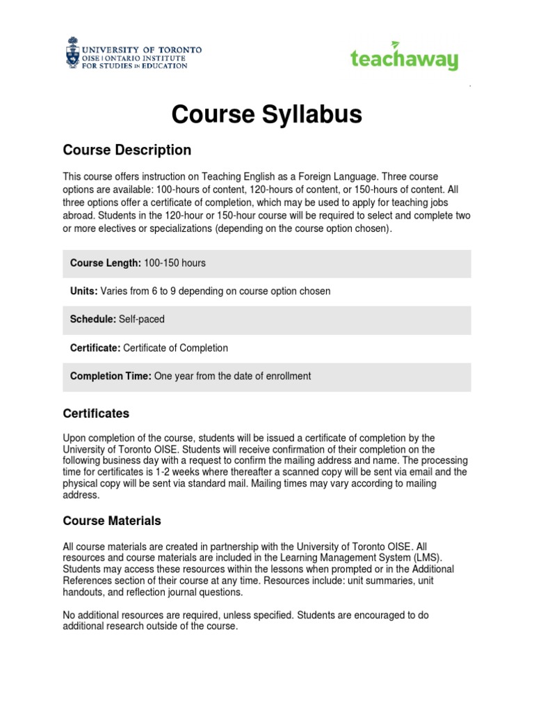 OISE TEFL Syllabus PDF Teaching Method Educational Assessment