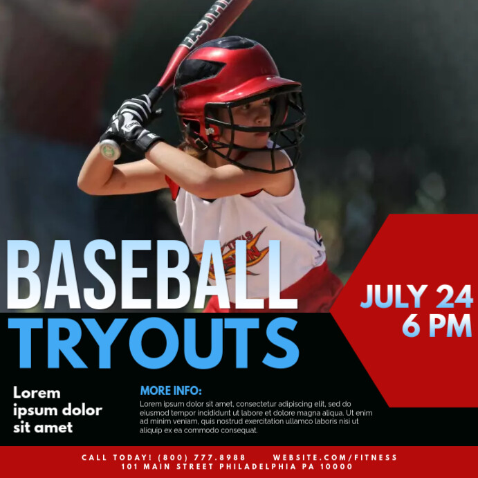 Blue Softball Tryouts Flyer Design Template PhotoADKing in 2024
