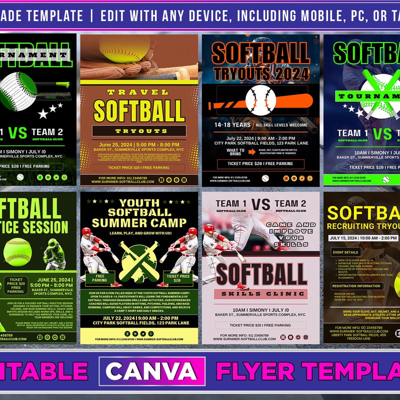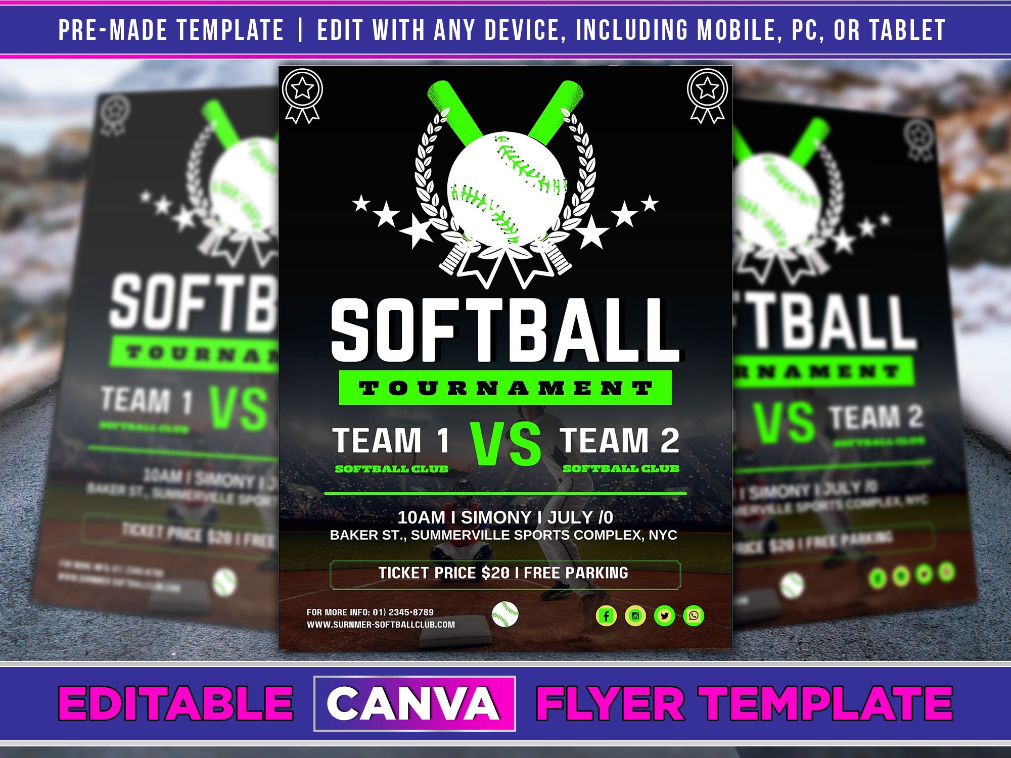 Softball Flyer Editable Canva Template US Letter Size Etsy