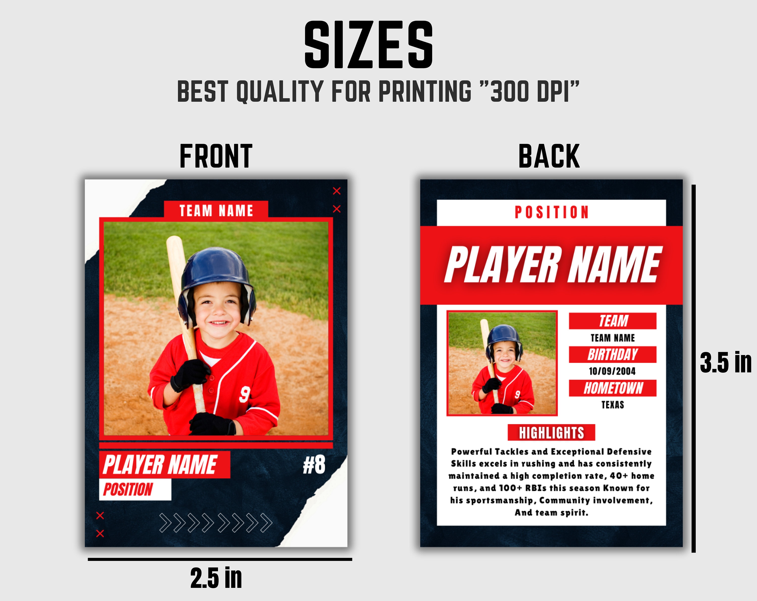 Baseball Trading Cards Editable Template Customizable DIY Sports Card