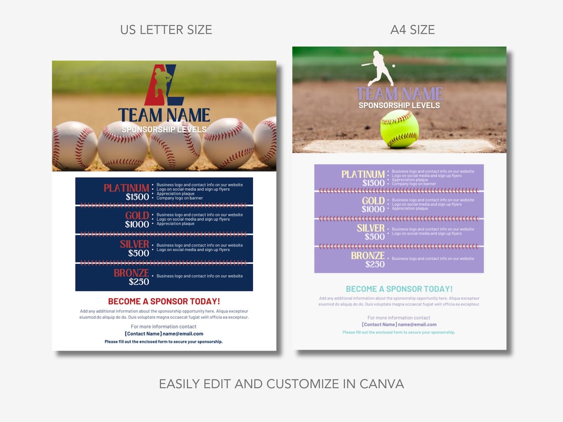 Baseball/softball Sponsorship Sports Team Sponsorship Package