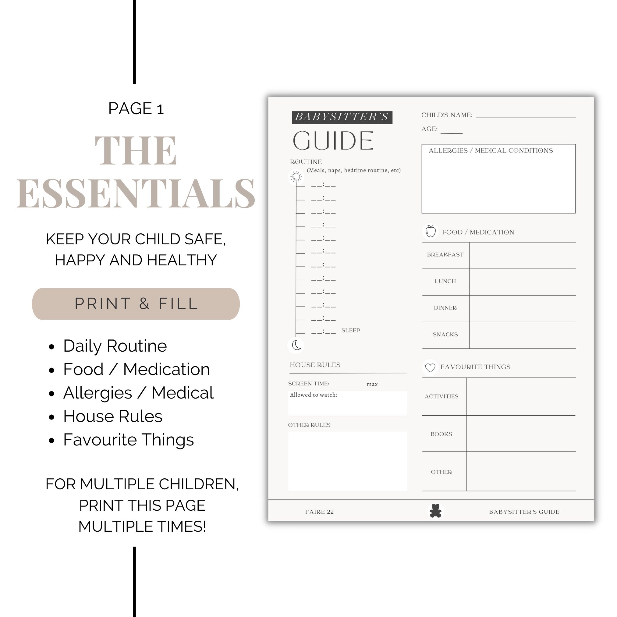 Babysitter Notes Babysitter Instructions Babysitting Information Sheet