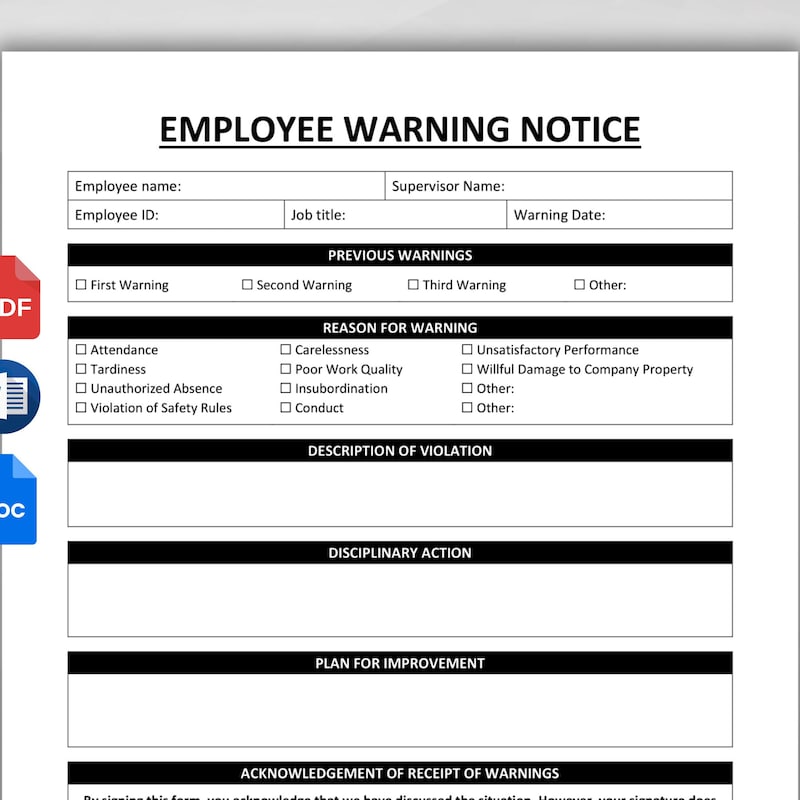 Employee Write up Form Disciplinary Form Employee Warning Employee