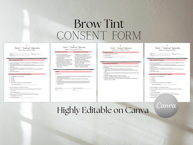 Brow Tint Consent Template Editable Esthetician Treatment Agreement