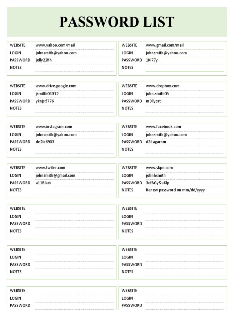 20 Best Password List Templates (Word Excel PDF) ᐅ TemplateLab