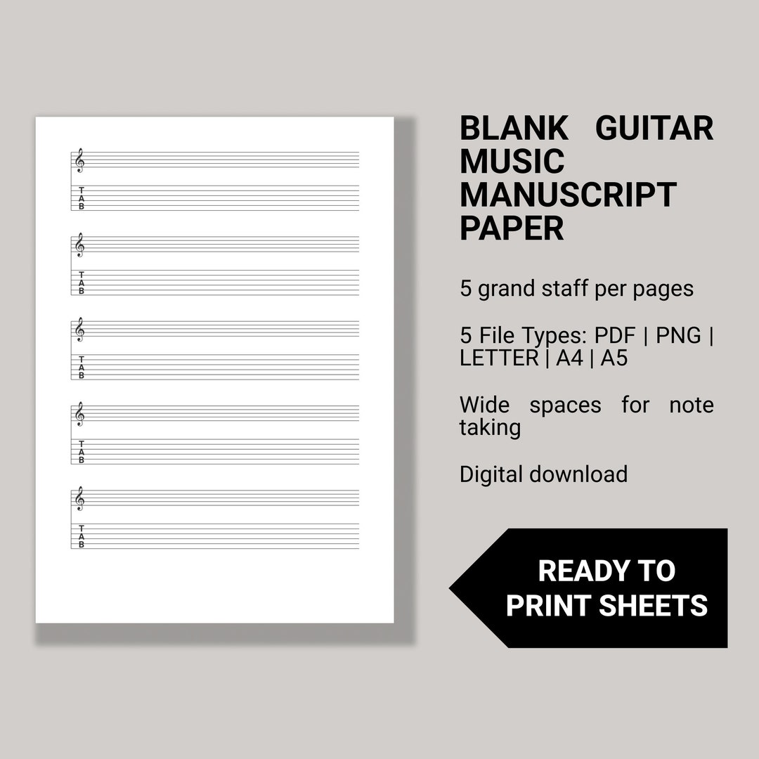 Printable Music Manuscript Paper: Treble Tabs and Notes for Guitar