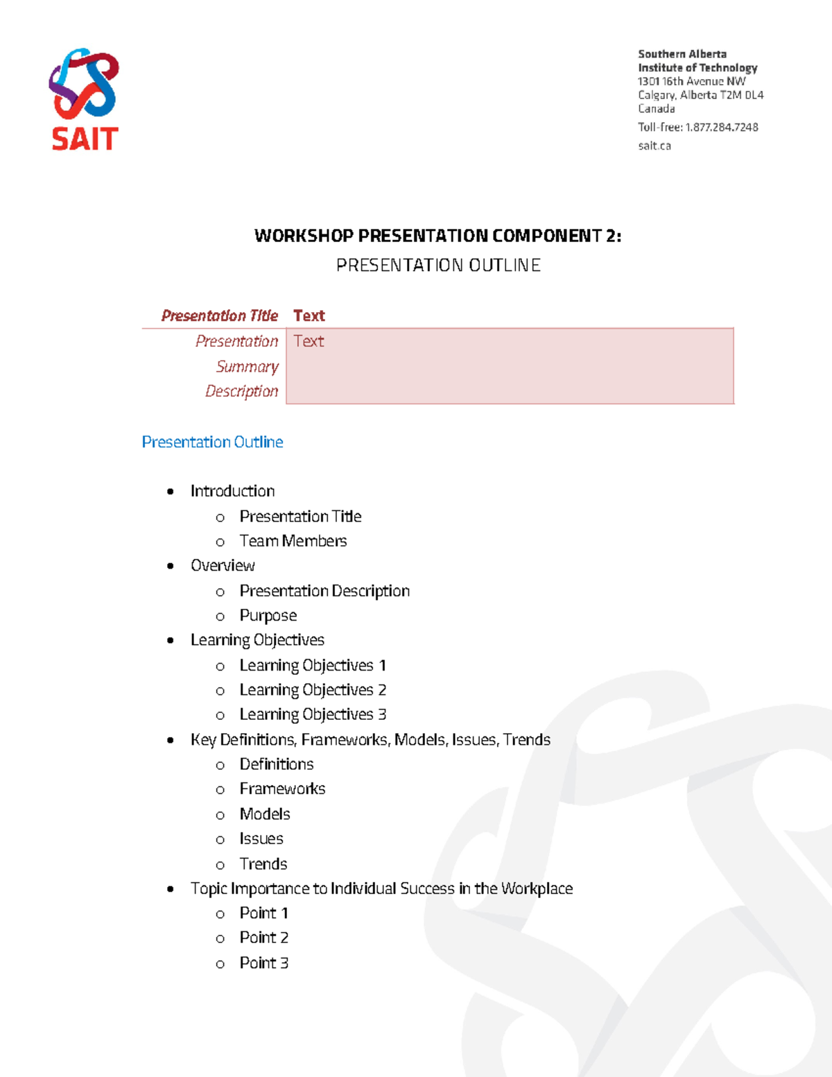 Template For Presentation Outline