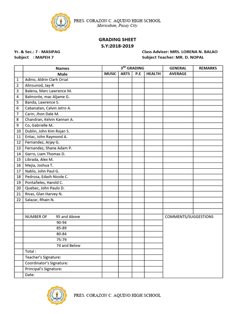 Grading Sheet And Ranking Board Template Excel MyHot Girl