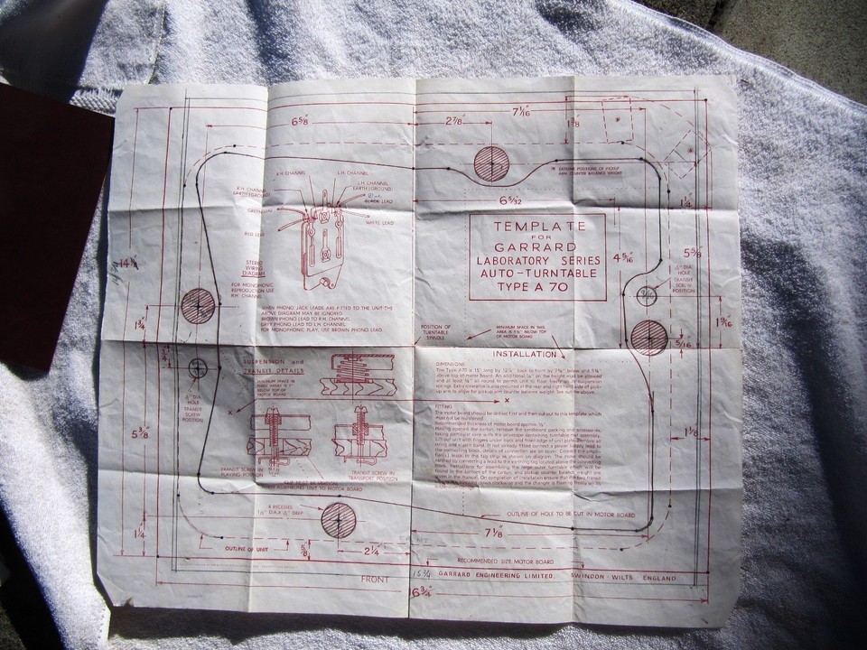 GARRARD A70 MOUNTING TEMPLATE Transcription Turntable Plinth Base