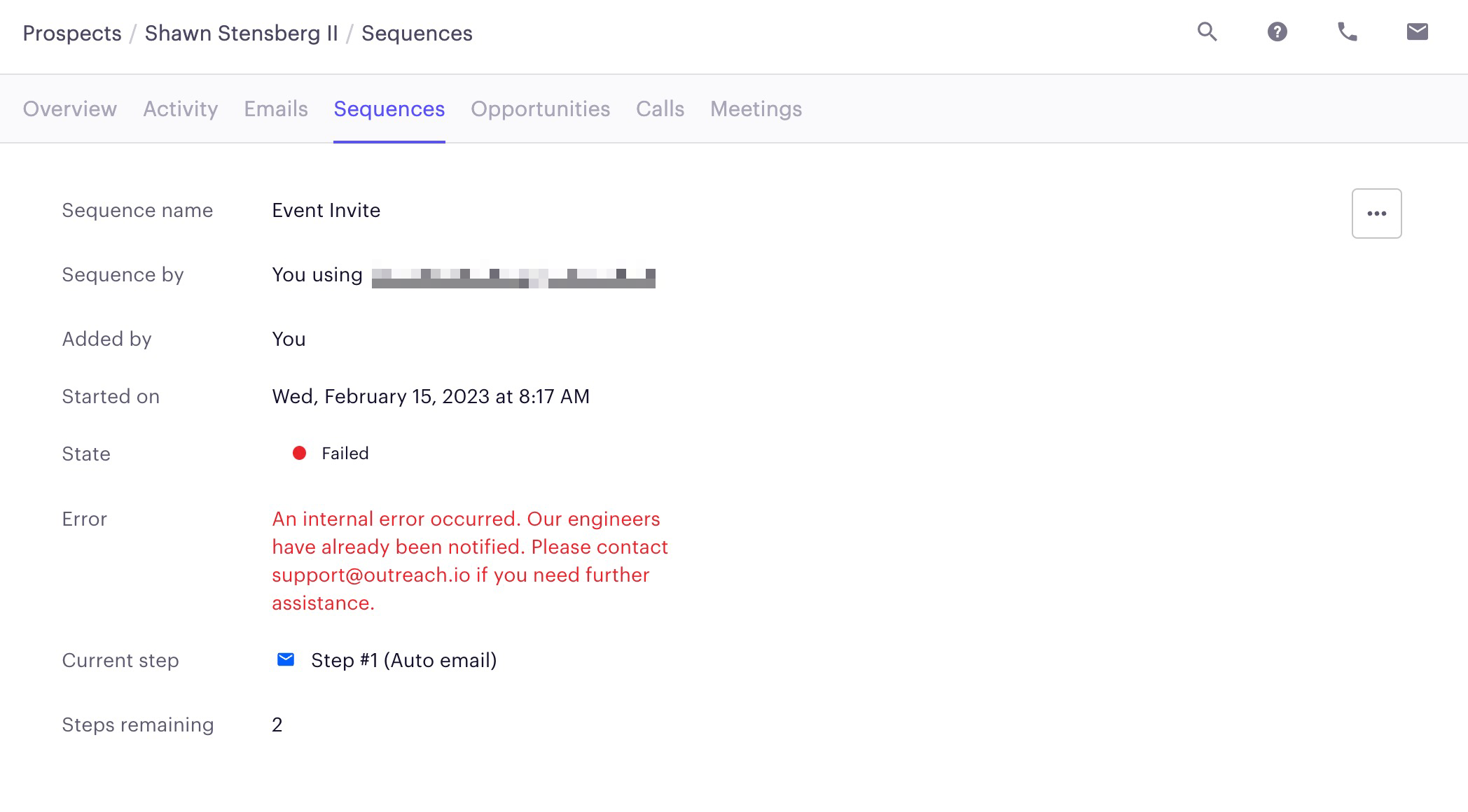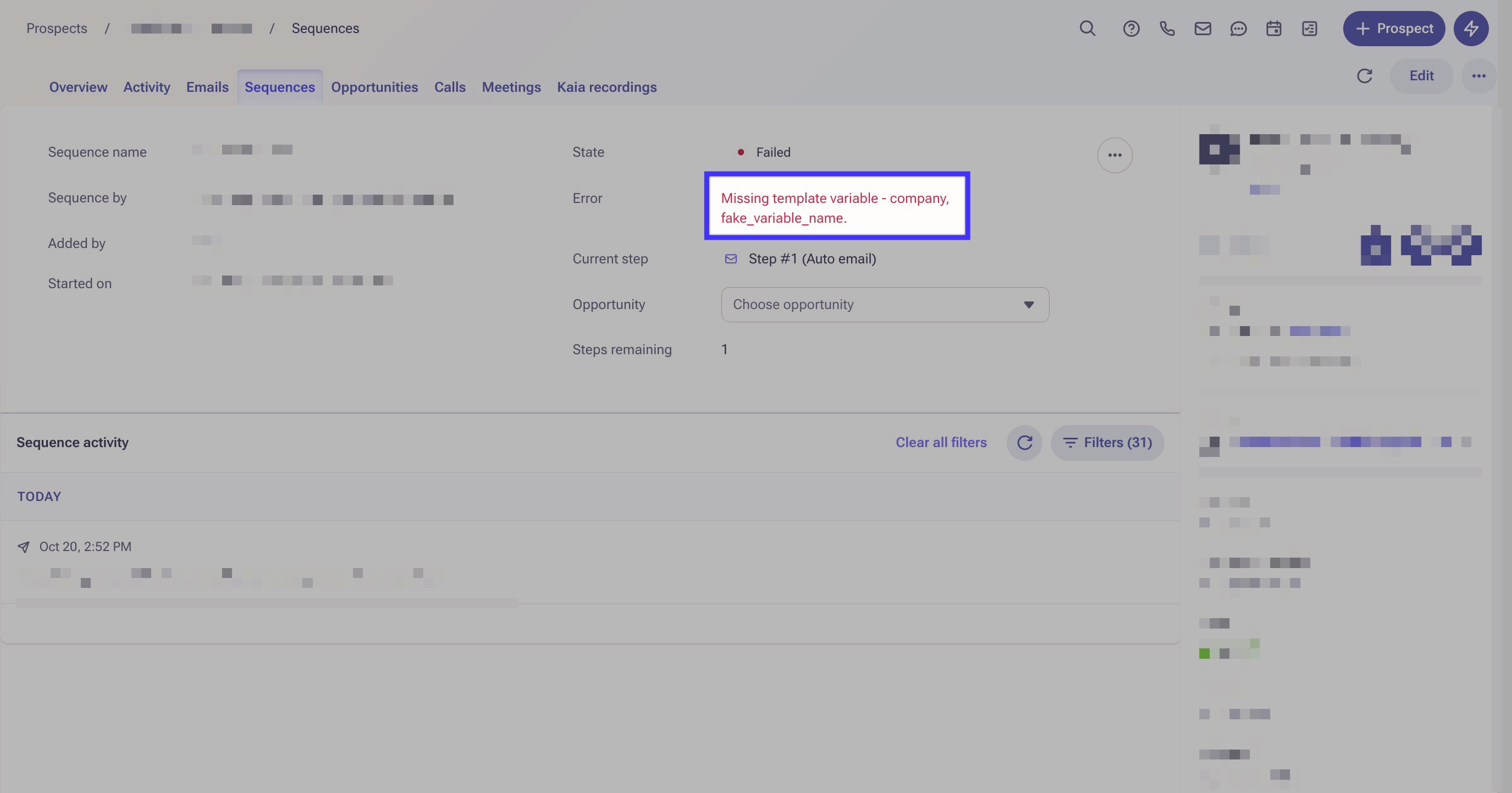Missing template variable error on sequence step Outreach Support