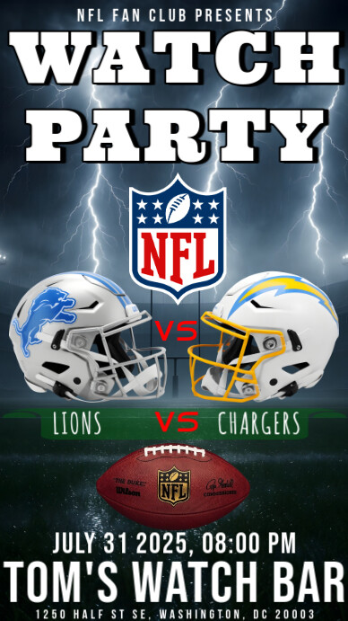 Nfl Lions Vs Chargers Watch Party Templet Instagram Story Template