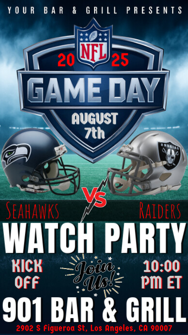 Plantilla de NFL Preseason 2025 Seattle Seahawks VS Las Vegas Raiders