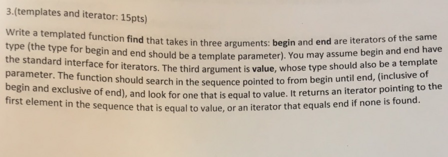 Solved 3 (templates and iterator: 15pts) Write a templated Chegg com