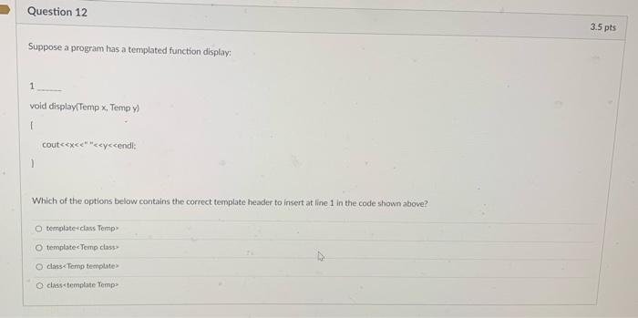 Solved Suppose a program has a templated function display: 1 Chegg com