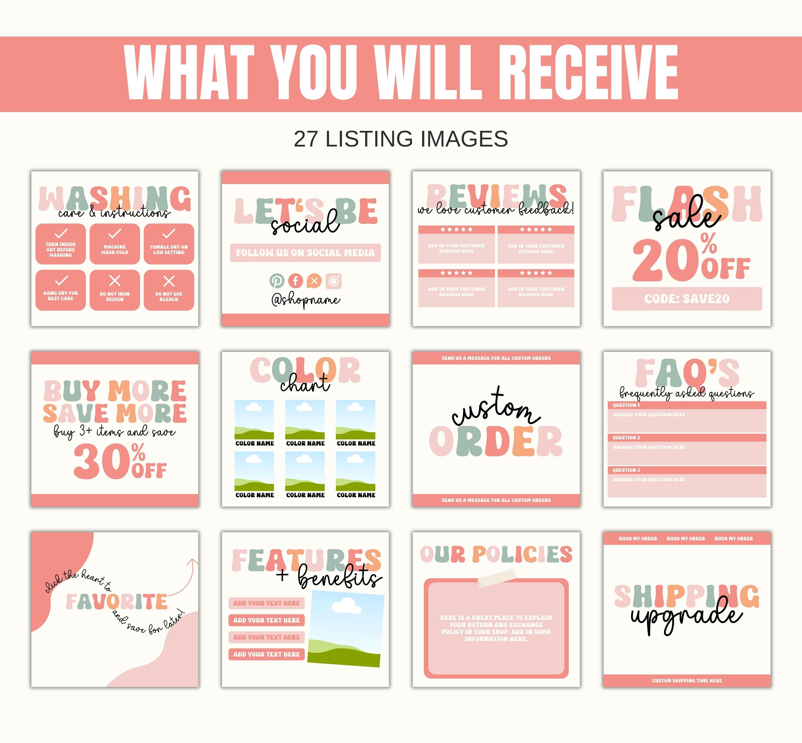 Etsy Listing Templates Etsy Shop Branding Kit Etsy Canva Template