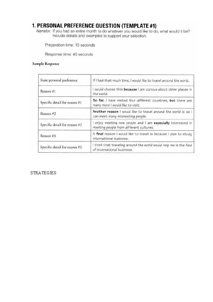 Speaking Templates For Toefl