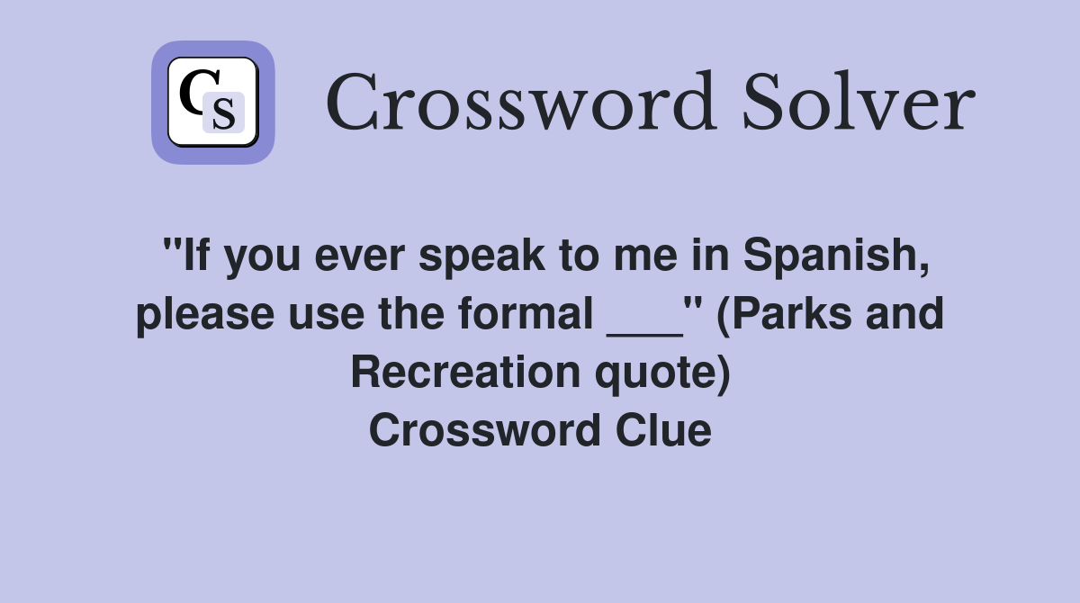 quot If you ever speak to me in Spanish please use the formal quot (Parks