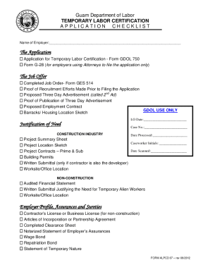 Fillable Online Temporary Labor Certification Application Checklist Fax