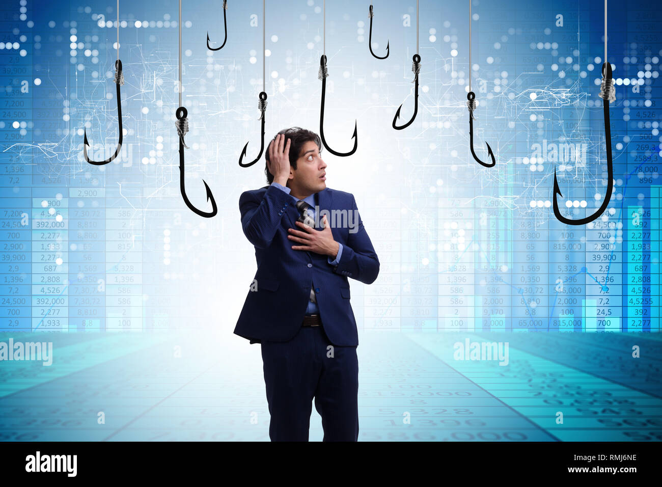 Businessman being tempted to bite the bait Stock Photo Alamy