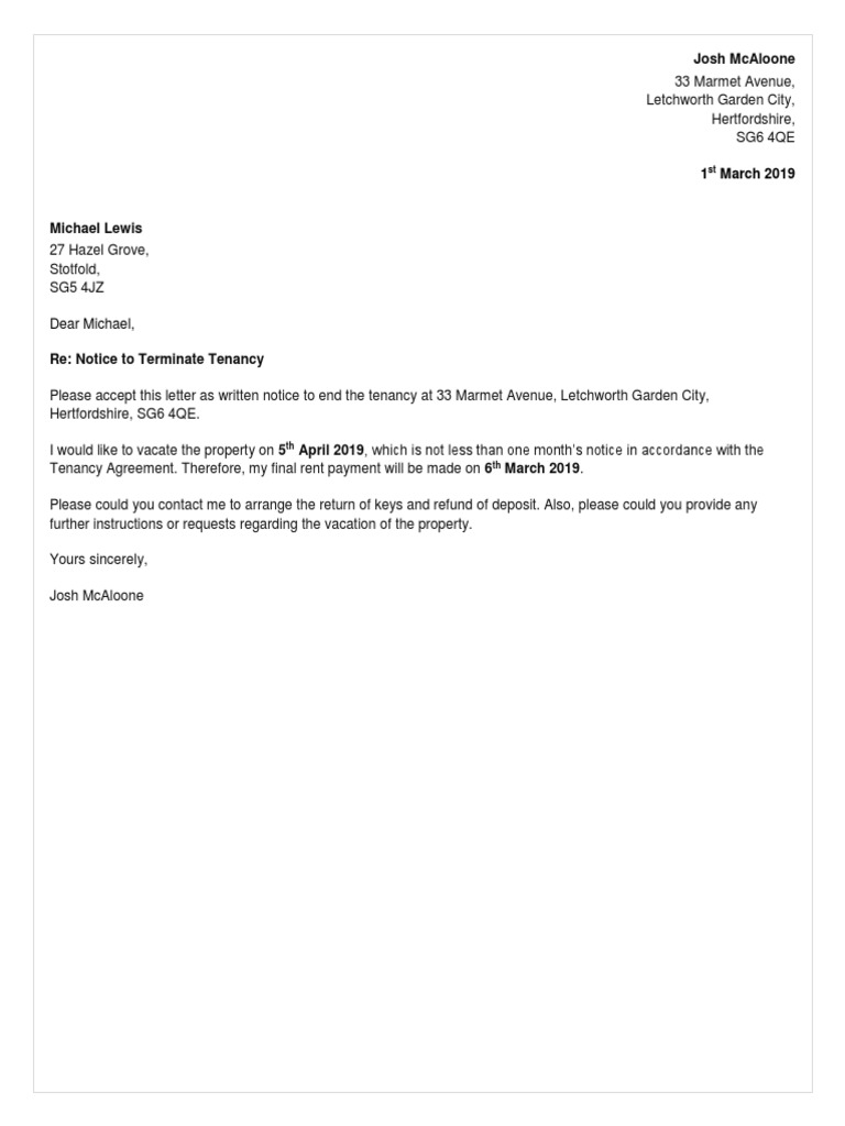 Tenancy Notice Letter Template From Landlord PDF Tacitproject