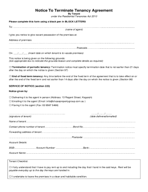 Free Termination Of Tenancy Notice Template to Edit Online