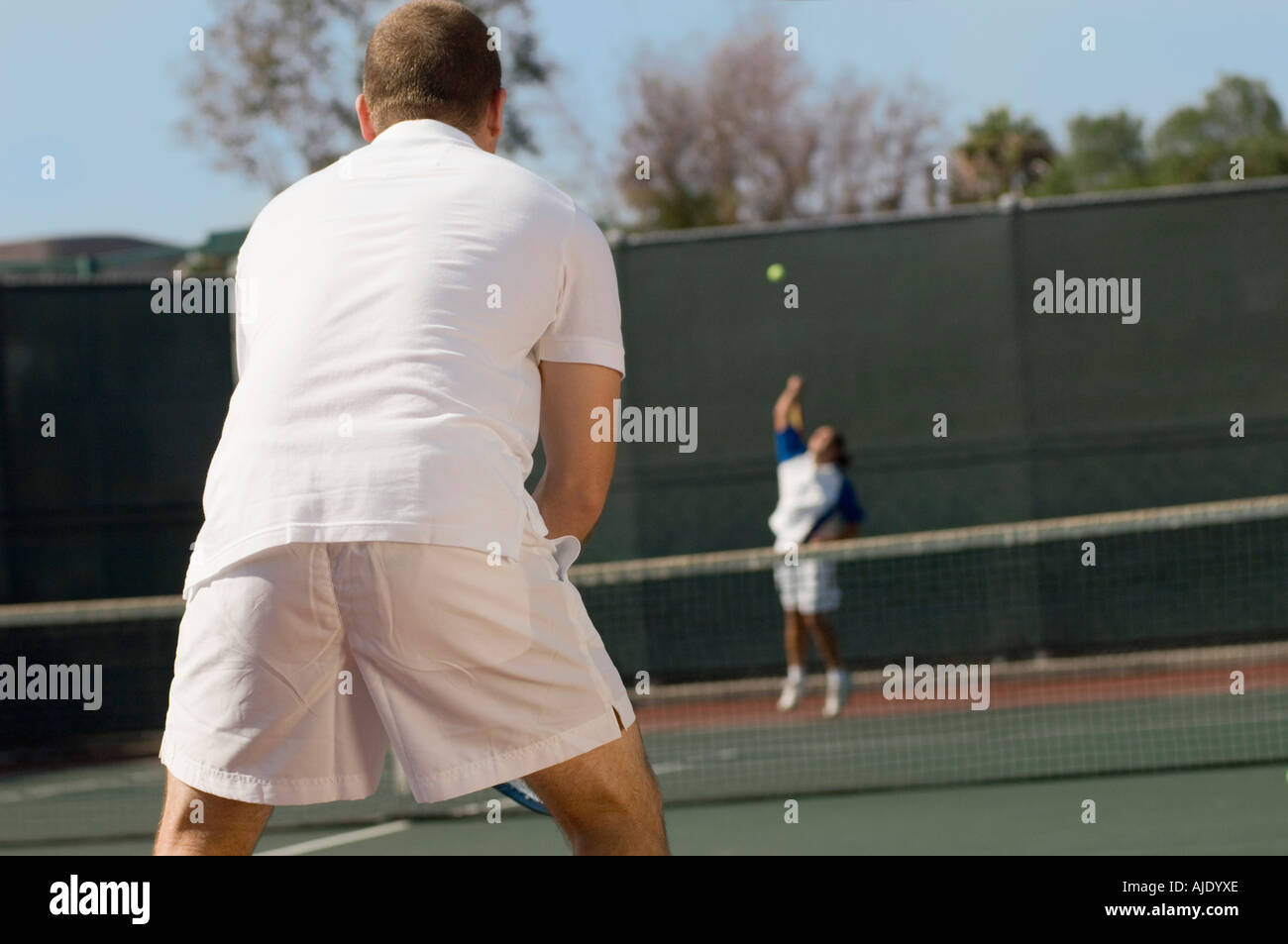 Tennis Player on court Waiting For Serve back view Stock Photo Alamy