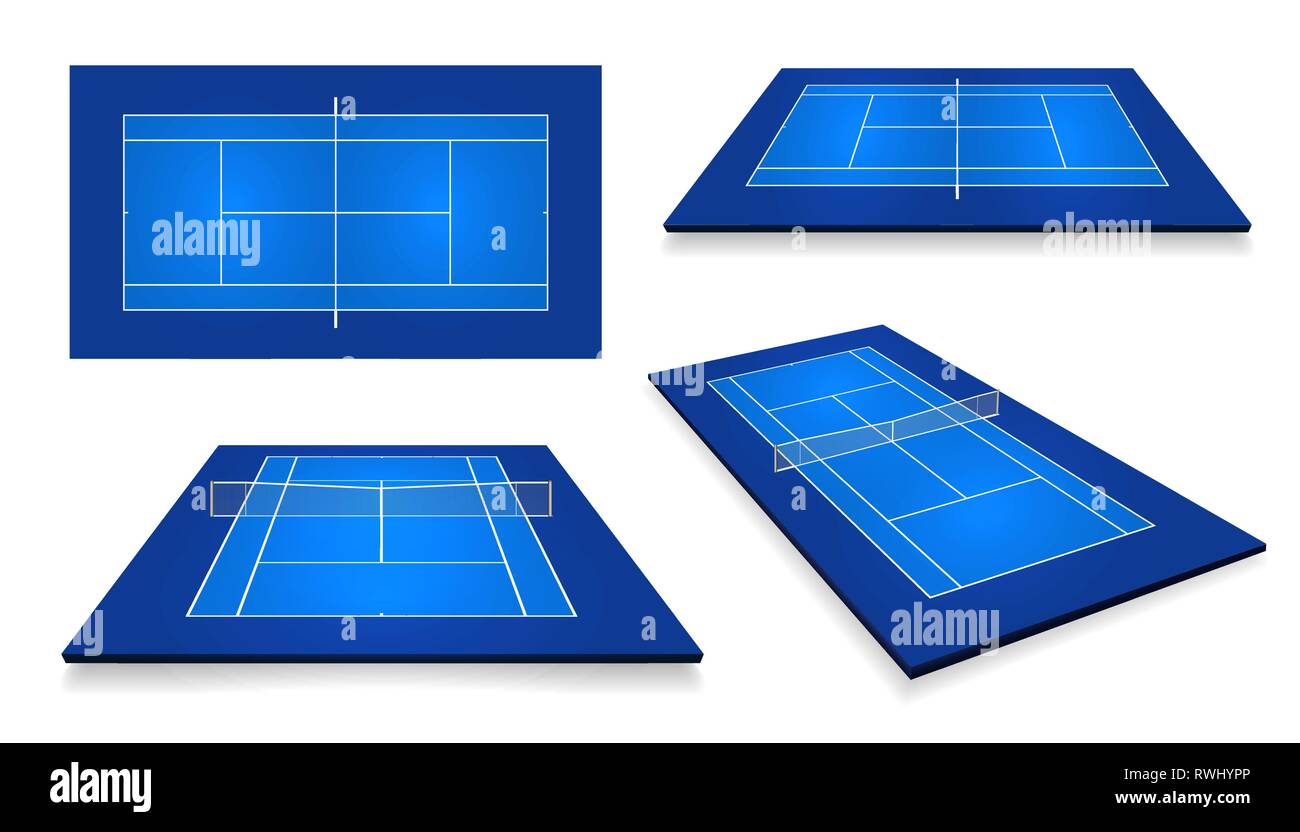 Three Designs Of Tennis Court Top View Landscape Tennis Vector Top