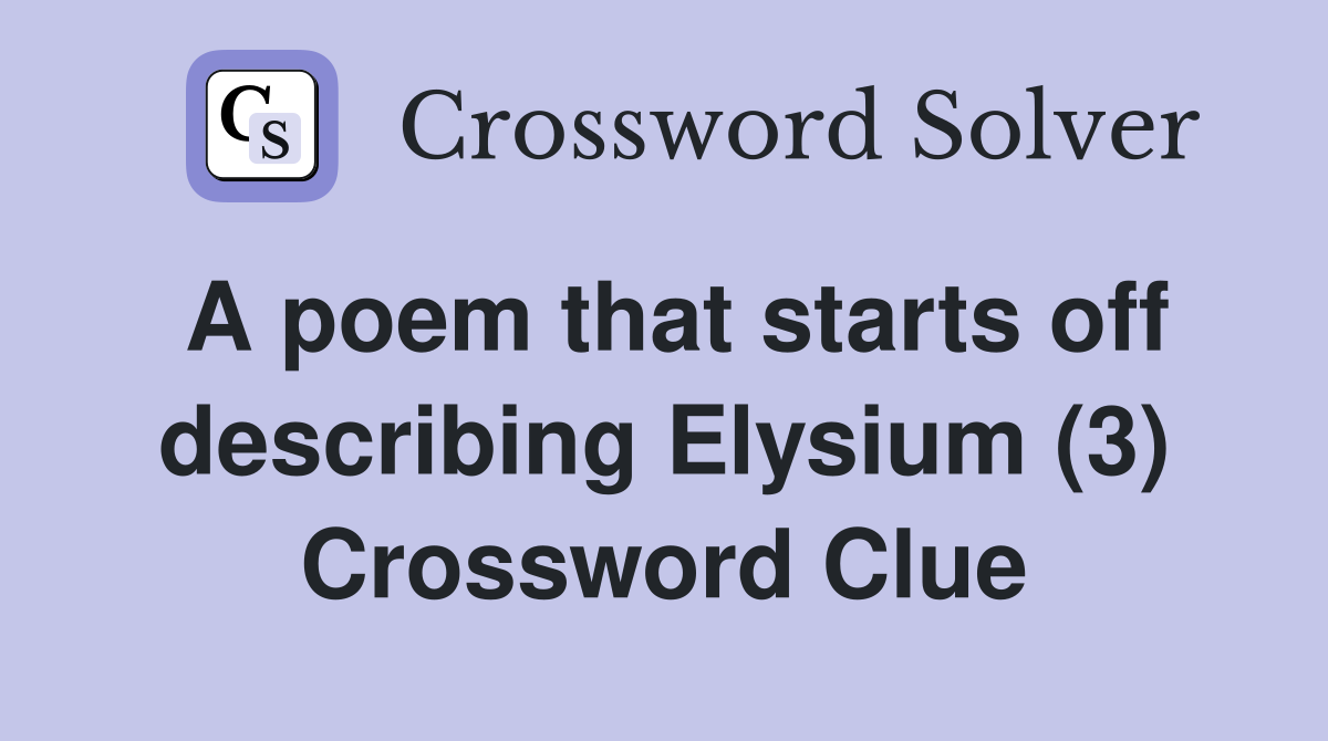 A poem that starts off describing Elysium (3) Crossword Clue Answers