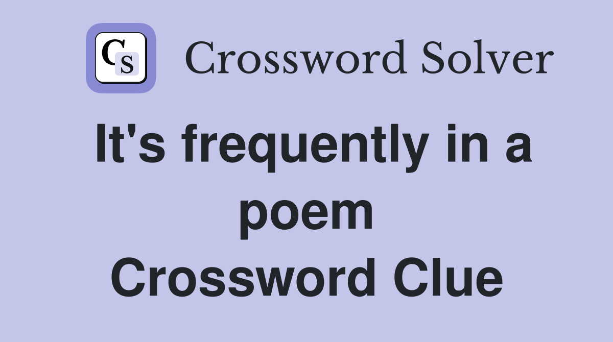 It #39 s frequently in a poem Crossword Clue Answers Crossword Solver