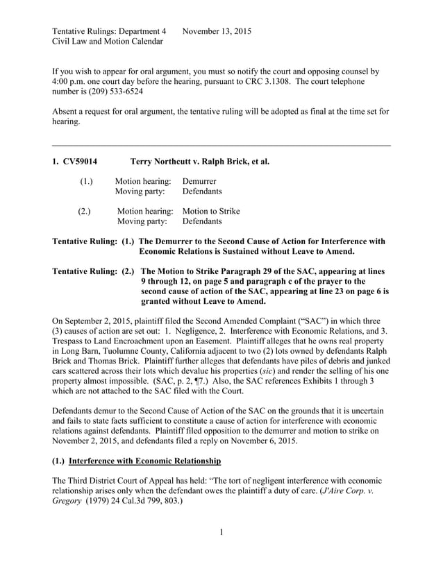Fillable Online Tentative Rulings for Department 403 Fresno Superior