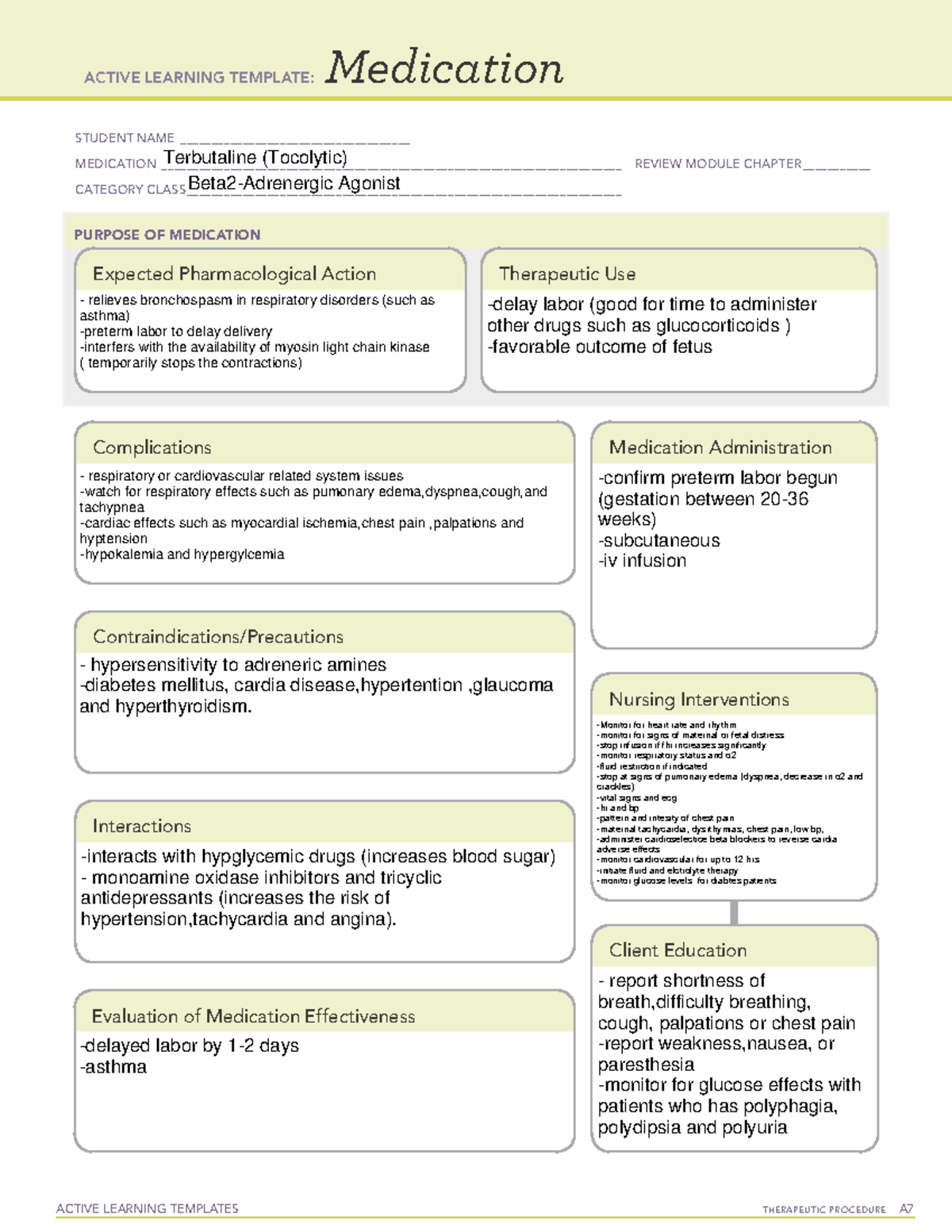 Terbutaline Template Print ACTIVE LEARNING TEMPLATES THERAPEUTIC