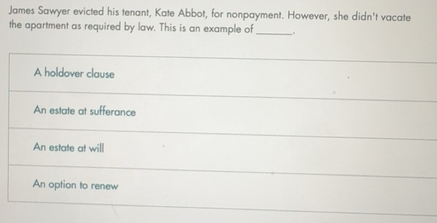 Solved: James Sawyer evicted his tenant Kate Abbot for nonpayment