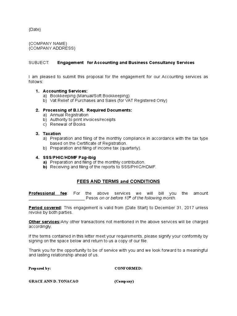 terms of engagement template Compilation Engagement services docx