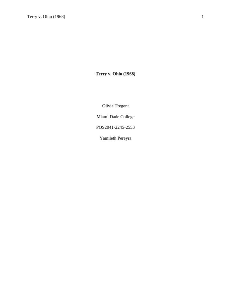 Terry v Ohio Case Brief Study Example Topics and Well Written Essays